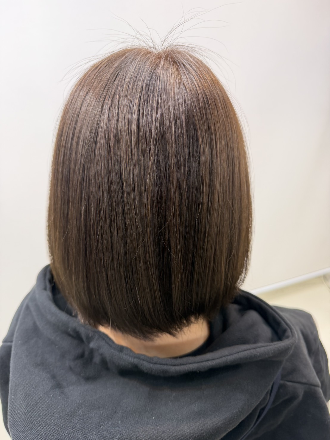 また、縮毛矯正を継続していきたいというモデルさんの要望もありブリーチ施術無しでカラーさせていただきました