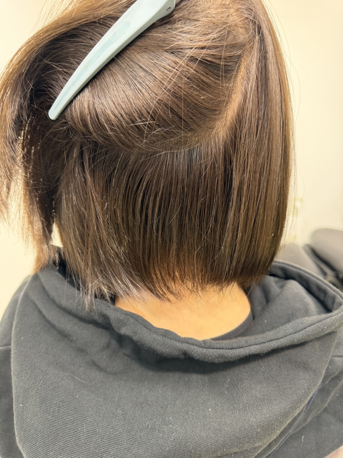 今回は、ご希望の明るさの薬剤をそのまま使うのではなく、「加減法」という手法を用いました。