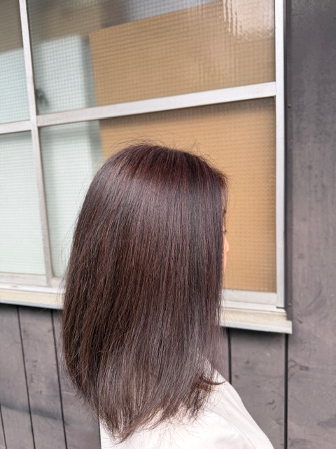 こんにちは、袴田です。お休みの日にモデルさんを用意していただいたのでカラートリートメント(ココフワ)をやらせていただきました。ココフワは放置時間が長いのと染まりが少し弱い代わりにゼロダメージで染める事ができ、頭皮が荒れやすい人でも安心して施術できるカラーです。仕上がりはめちゃくちゃ滑らかになりますので気になる方はお気軽にお声掛けください。before↓↓